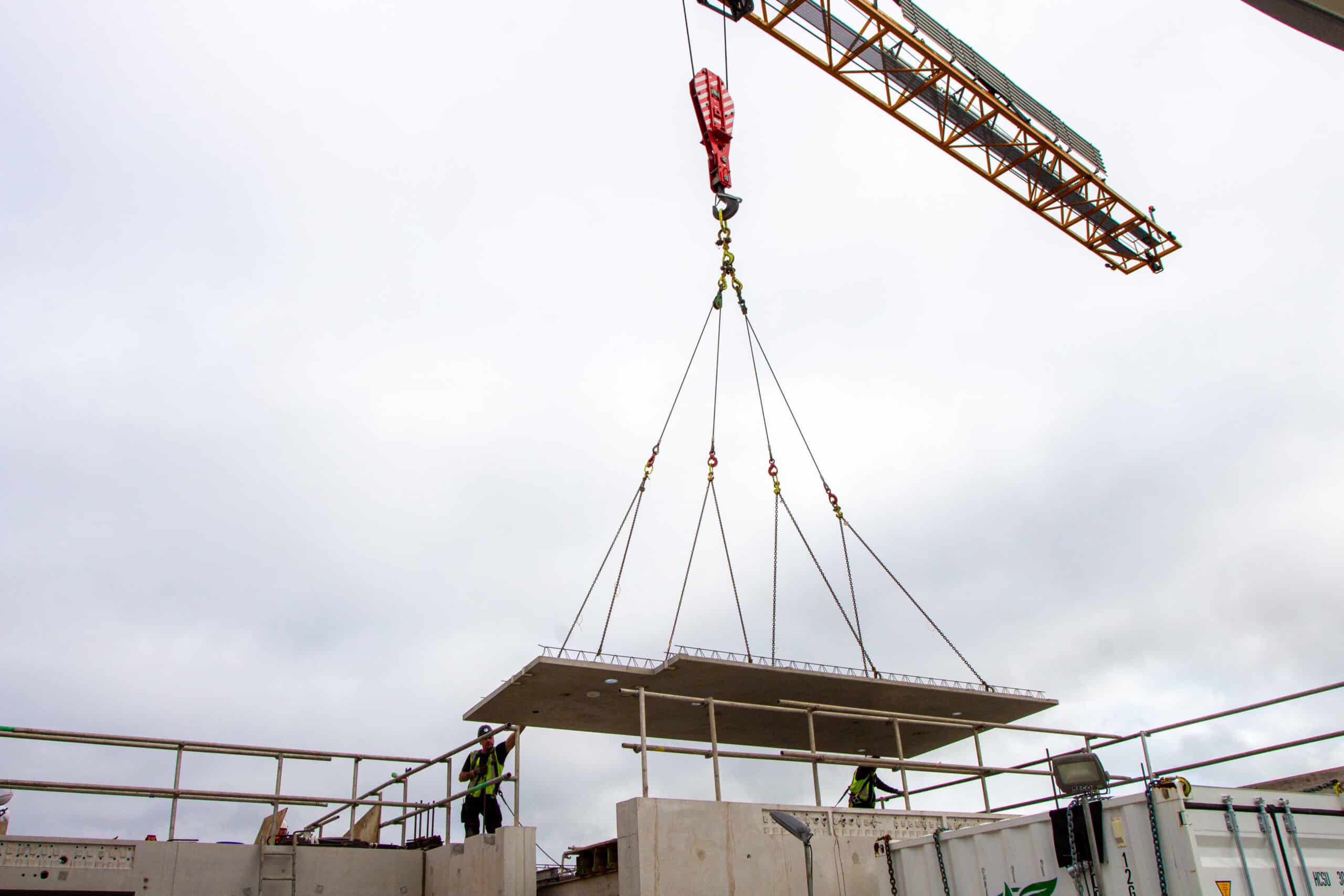 - Montage van prefab betonnen wanden en balkons